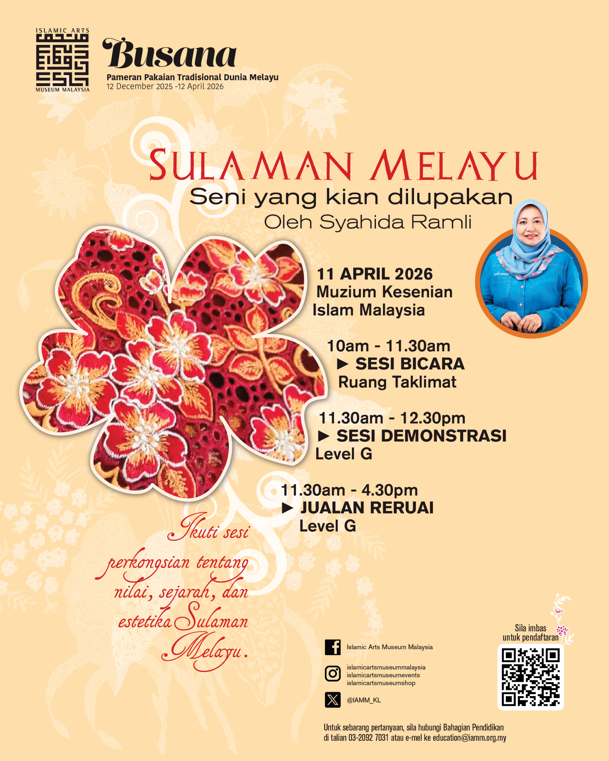 This programme is open to anyone interested in learning more about traditional crafts, cultural heritage, and the timeless beauty of Malay embroidery.